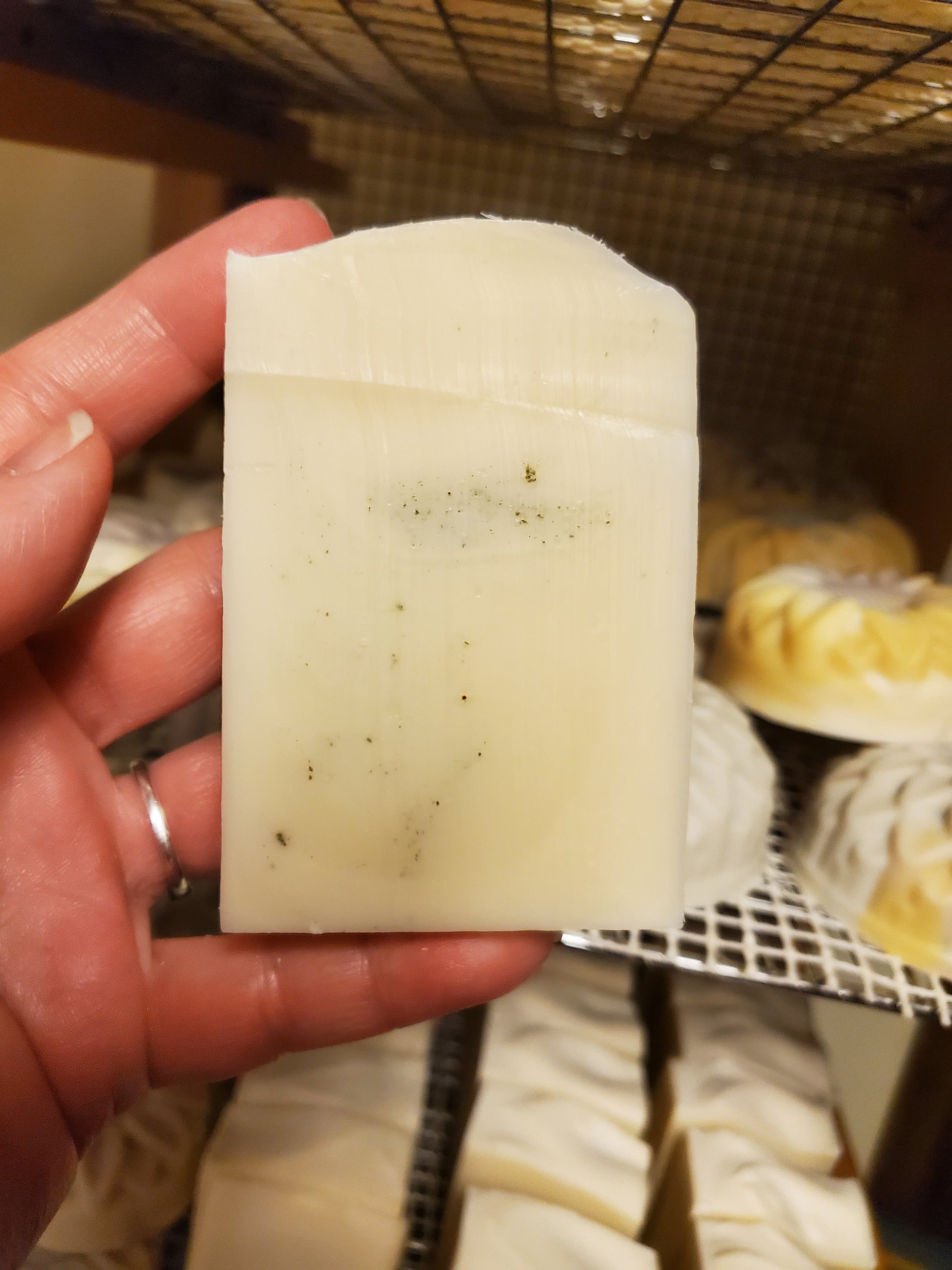 Ingredients: olive oil, coconut oil, cocoa butter, castor oil, sodium hydroxide, sodium lactate, distilled water.