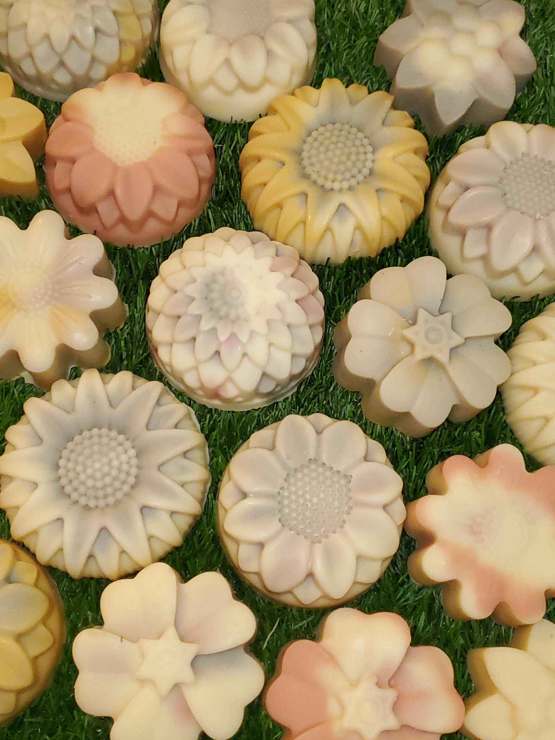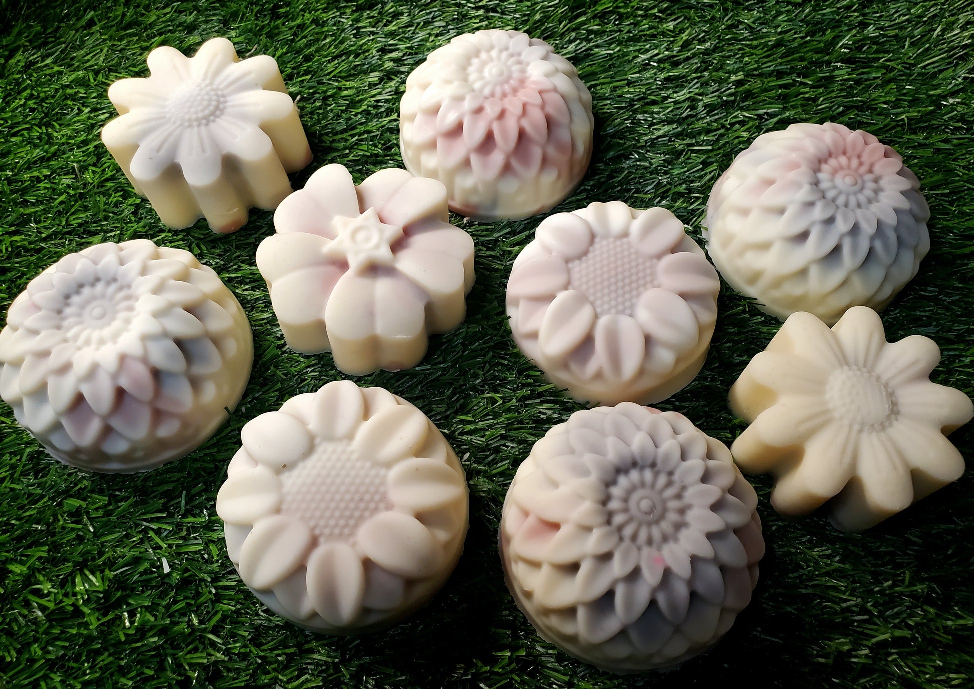 Our Just Plain Soap with its rich, silky, unscented lather in a cold process style to make beautiful blooms!