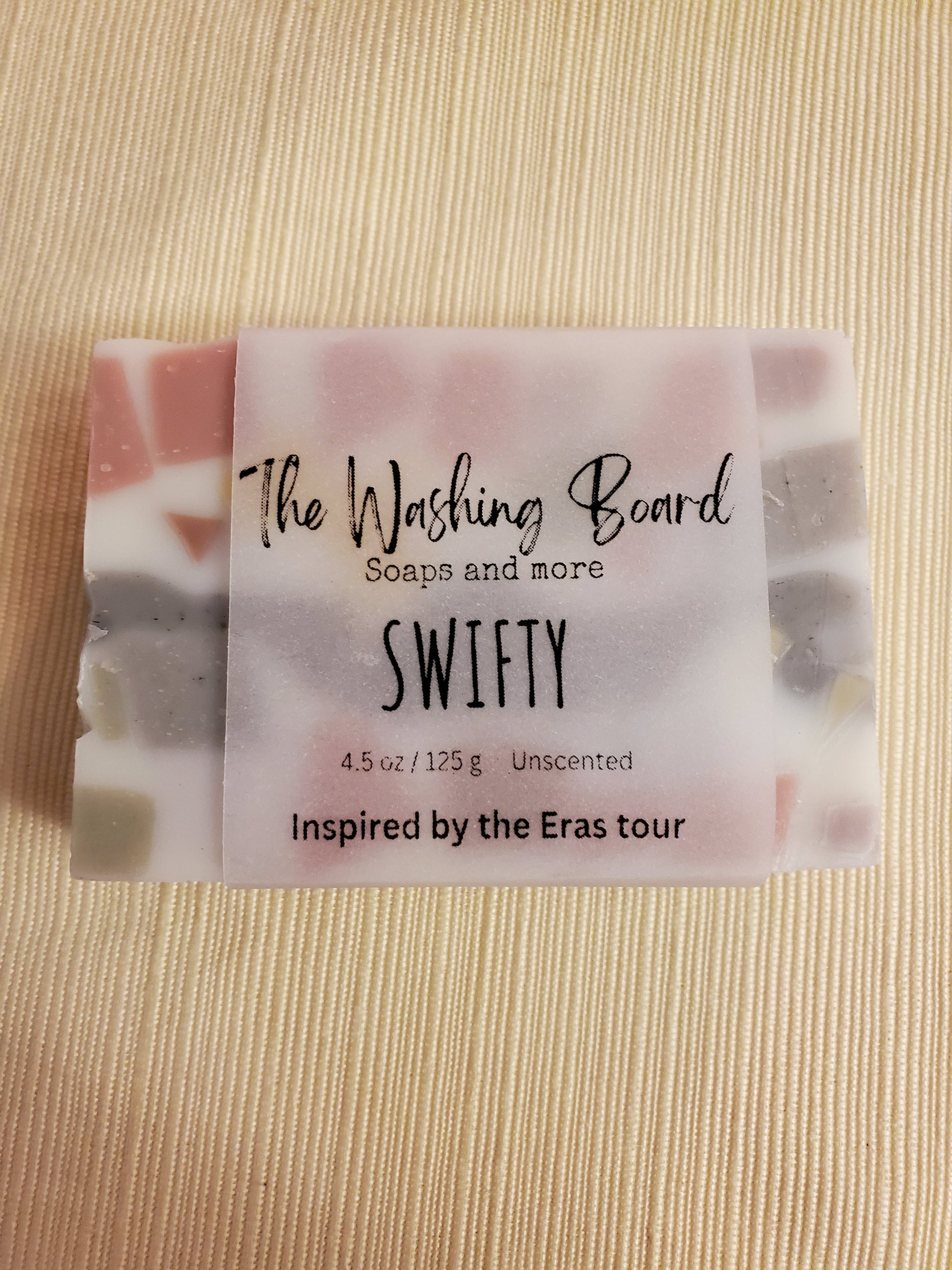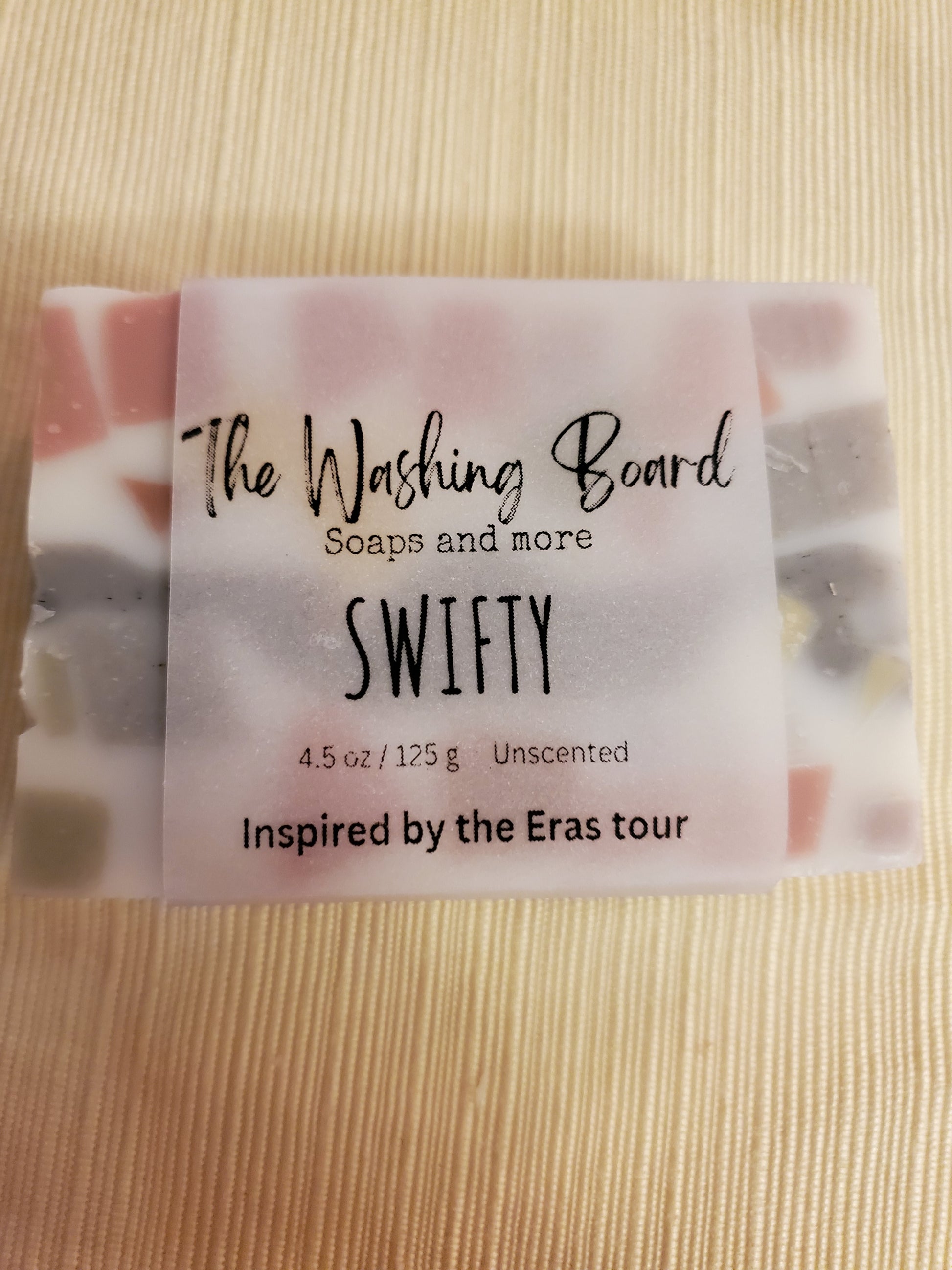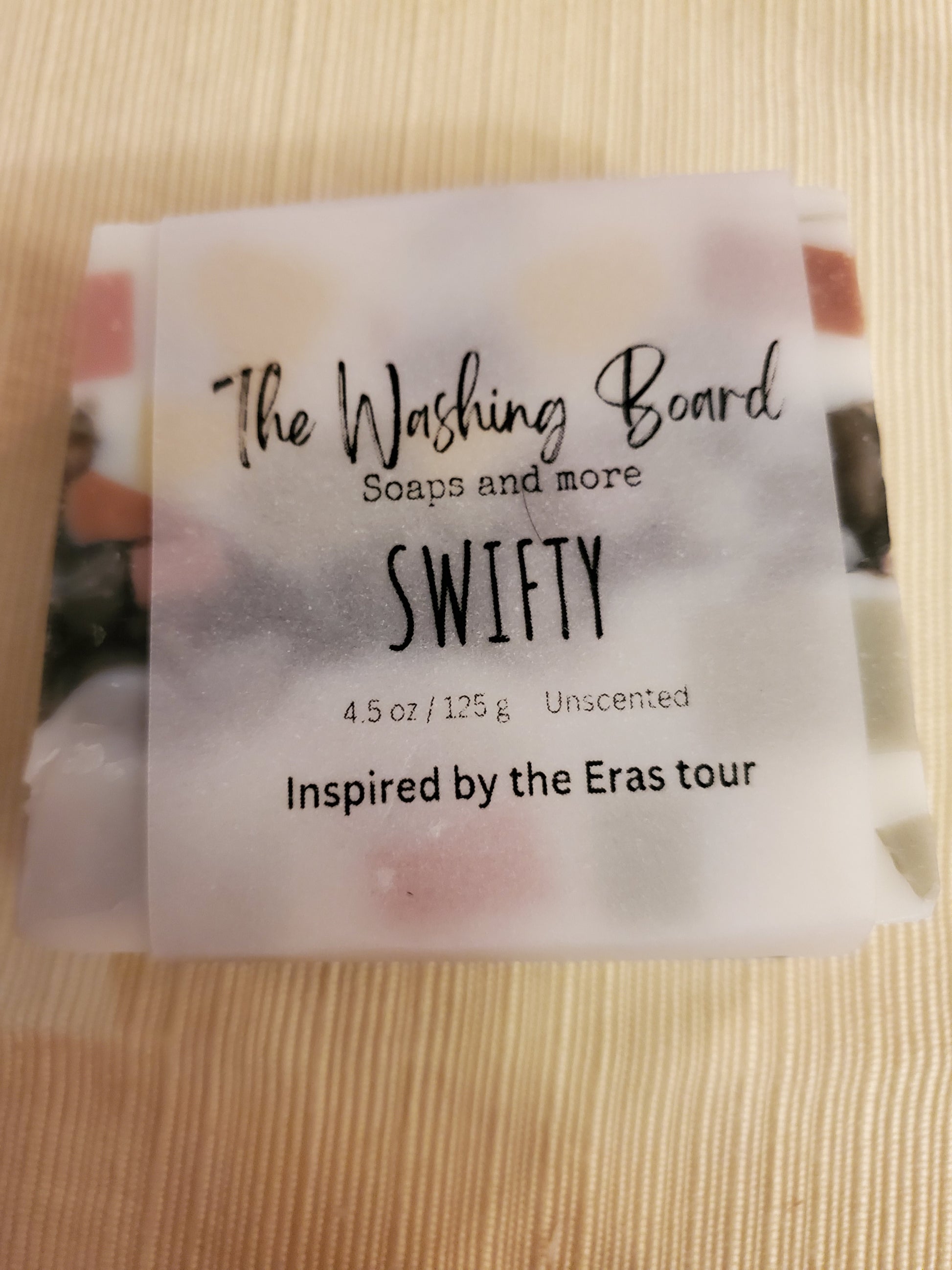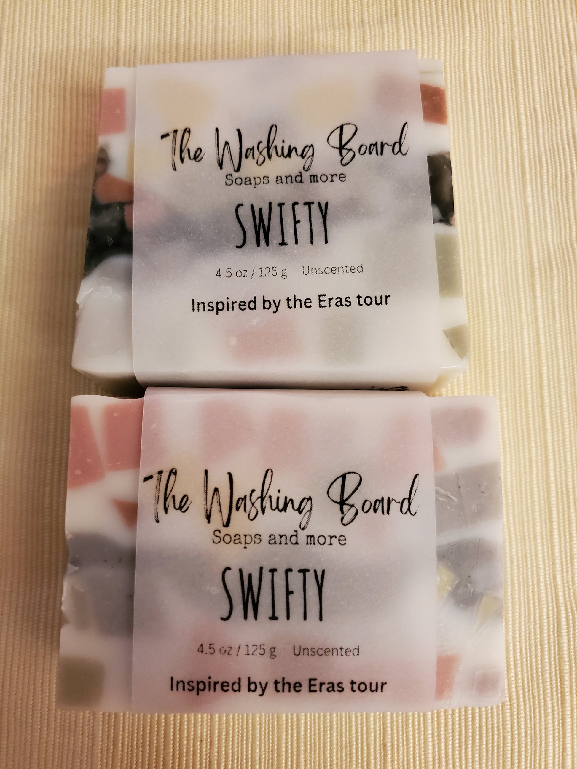 Our Just Plain Soap all dressed up for the Eras tour! Inspired by the beautiful colors music, the entrepreneurial spirit she brings to the game! We swapped shea butter for the cocoa butter in our original recipe to add a little individuality.